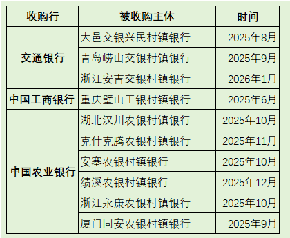 截至2026年1月,工商银行、农业银行、交通银行三大国有银行已累计获批实施10个“村改支”项目,其中工商银行1家、交通银行3家、农业银行6家。