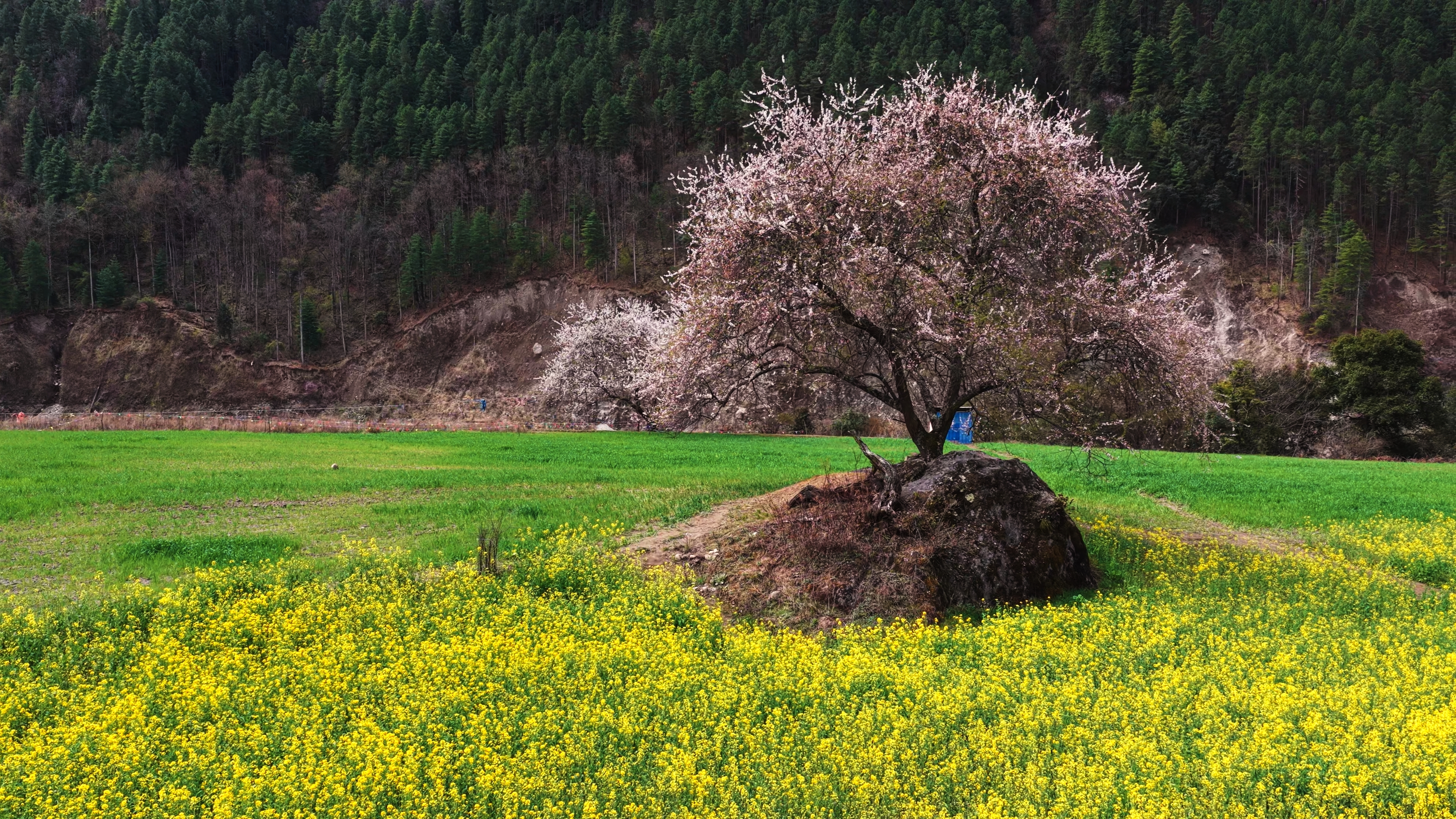 易贡油菜花田位于西藏林芝市波密县易贡乡。近期,连片油菜花竞相开放,桃花也缀满枝头,与远山相互映衬,构成一幅高原田园画卷。